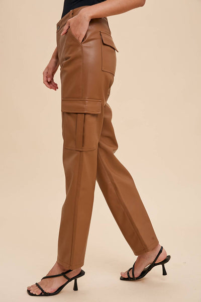 These vegan leather pants have everything you need for a practical and stylish look. Featuring front, back, and side pockets, as well as belt loops and a zip fly with button closure, these pants are both functional and fashionable.