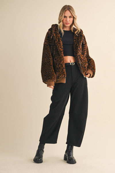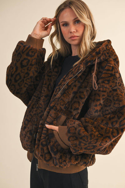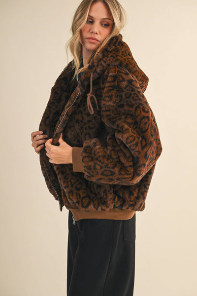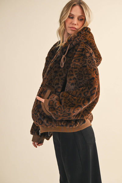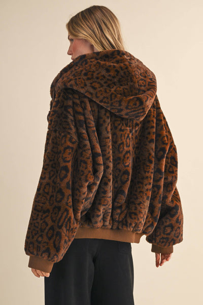Make a statement with this oversized leopard print fur hoodie jacket, combining bold style and unmatched comfort for your wardrobe’s new favorite piece.