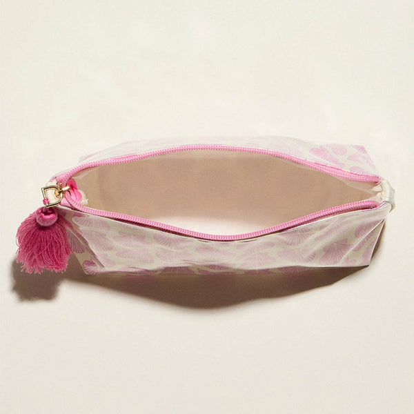 Compact zip pouch designed for organizing makeup, toiletries, and daily essentials with ease. Features a secure zipper closure, roomy interior for travel or everyday use, and a decorative tassel accent for added style. Ideal for handbags, luggage, gym bags, or quick organization on the go.